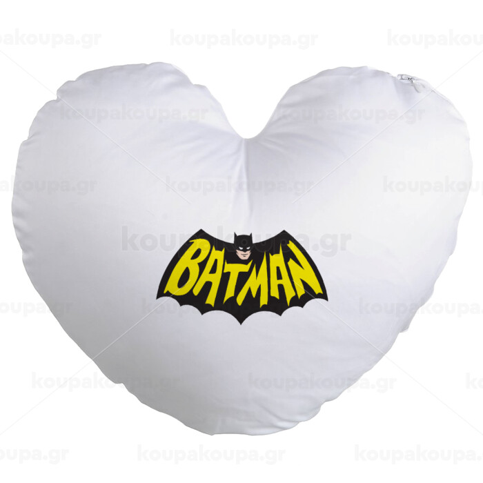 Batman classic logo, Μαξιλάρι καναπέ καρδιά 40x40cm περιέχεται το γέμισμα