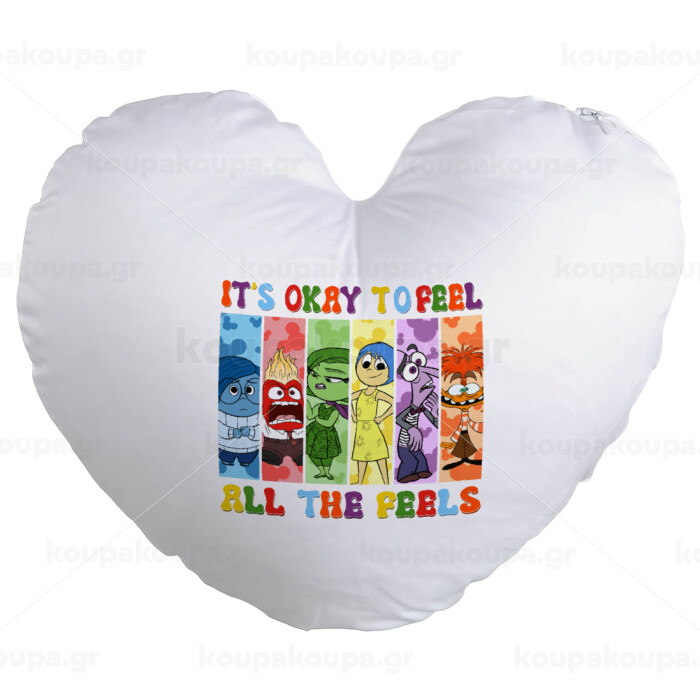 Inside Out It's Okay To Feel All The Feels , Μαξιλάρι καναπέ καρδιά 40x40cm περιέχεται το γέμισμα