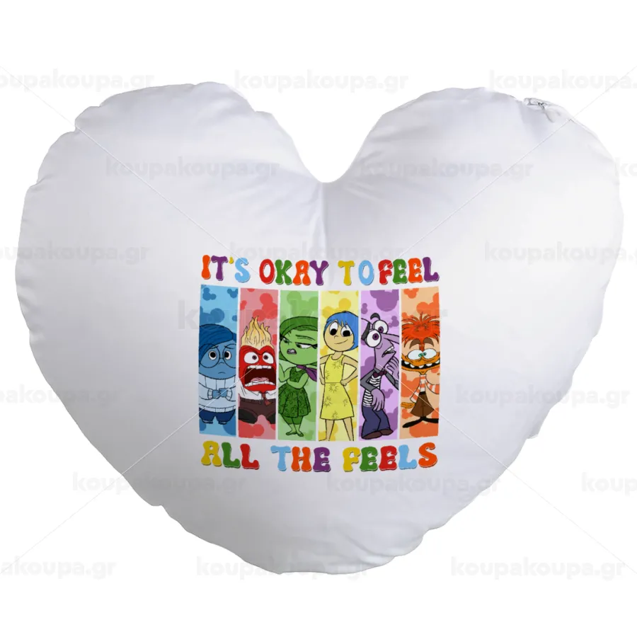 Inside Out It's Okay To Feel All The Feels , Μαξιλάρι καναπέ καρδιά 40x40cm περιέχεται το γέμισμα