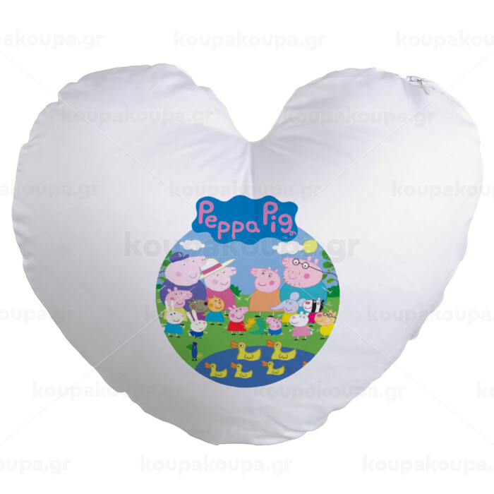 Peppa pig Family, Μαξιλάρι καναπέ καρδιά 40x40cm περιέχεται το γέμισμα