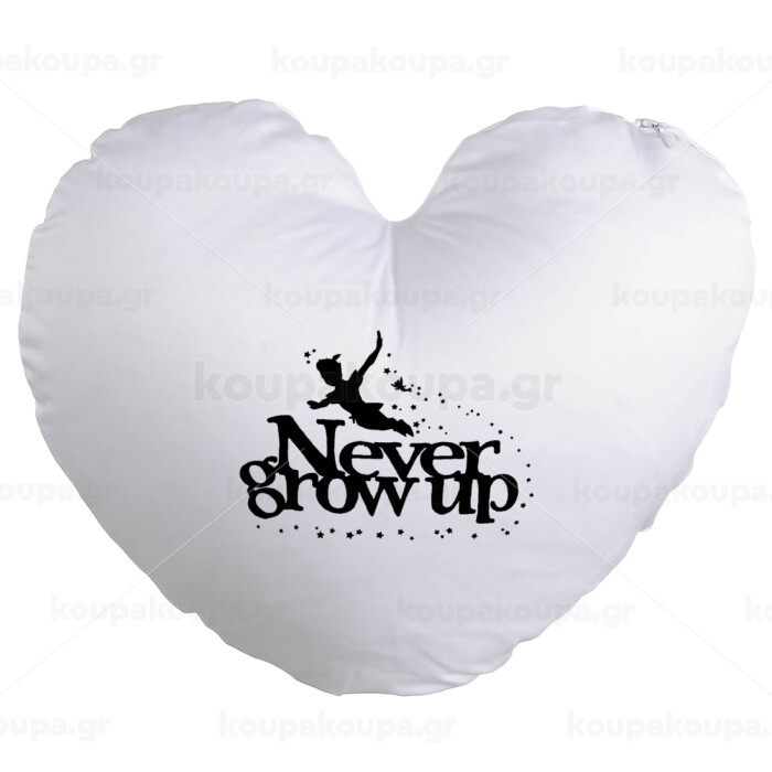 Peter pan, Never Grow UP, Μαξιλάρι καναπέ καρδιά 40x40cm περιέχεται το γέμισμα