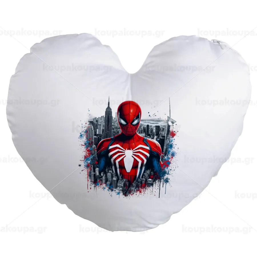 Spiderman City, Μαξιλάρι καναπέ καρδιά 40x40cm περιέχεται το γέμισμα