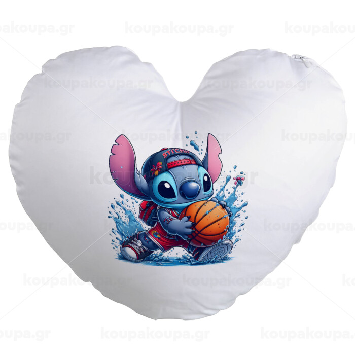 Stitch Basketball, Μαξιλάρι καναπέ καρδιά 40x40cm περιέχεται το γέμισμα