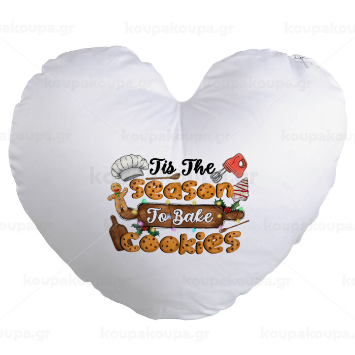 Tis The Season To Bake Cookies, Μαξιλάρι καναπέ καρδιά 40x40cm περιέχεται το γέμισμα
