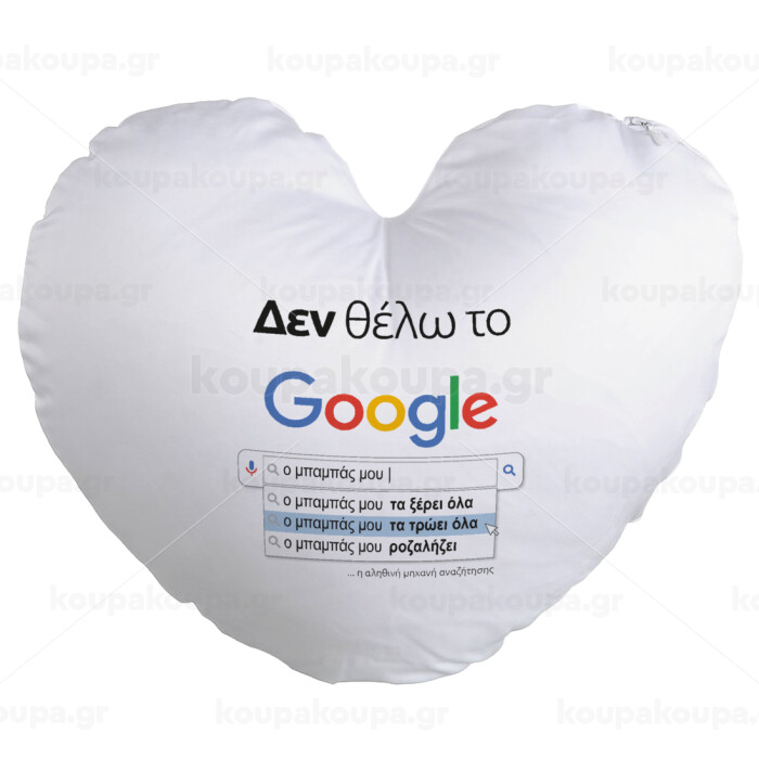 Δεν θέλω το Google, ο μπαμπάς μου..., Μαξιλάρι καναπέ καρδιά 40x40cm περιέχεται το γέμισμα