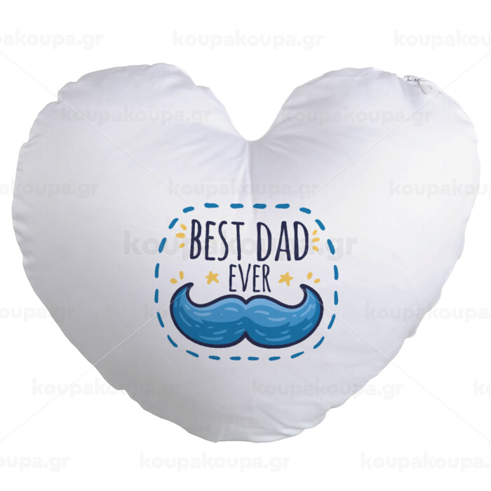 Best dad ever μπλε μουστάκι, Μαξιλάρι καναπέ καρδιά 40x40cm περιέχεται το γέμισμα