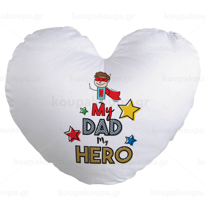 My Dad, my Hero!!!, Μαξιλάρι καναπέ καρδιά 40x40cm περιέχεται το γέμισμα