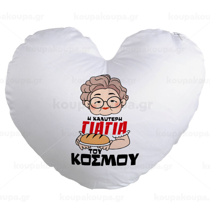 Η καλύτερη γιαγιά του κόσμου!, Μαξιλάρι καναπέ καρδιά 40x40cm περιέχεται το γέμισμα