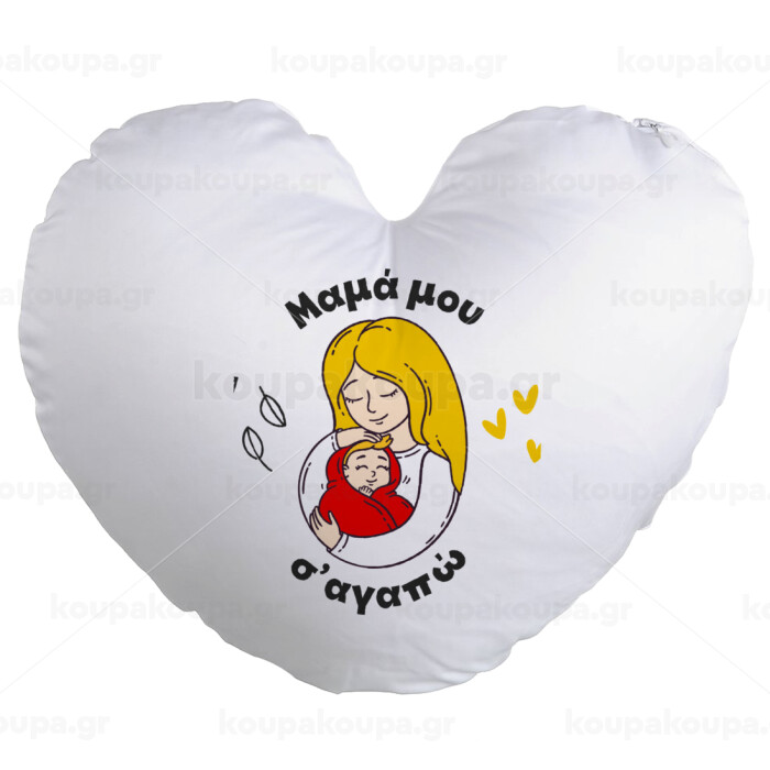 Μανούλα σ'αγαπώ αγκαλιά!, Μαξιλάρι καναπέ καρδιά 40x40cm περιέχεται το γέμισμα