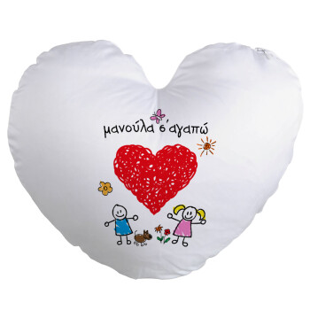 Μανούλα σ'αγαπώ!, Μαξιλάρι καναπέ καρδιά 40x40cm περιέχεται το γέμισμα