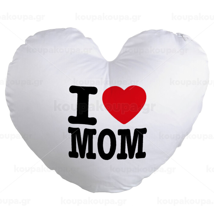 I LOVE MOM, Μαξιλάρι καναπέ καρδιά 40x40cm περιέχεται το γέμισμα
