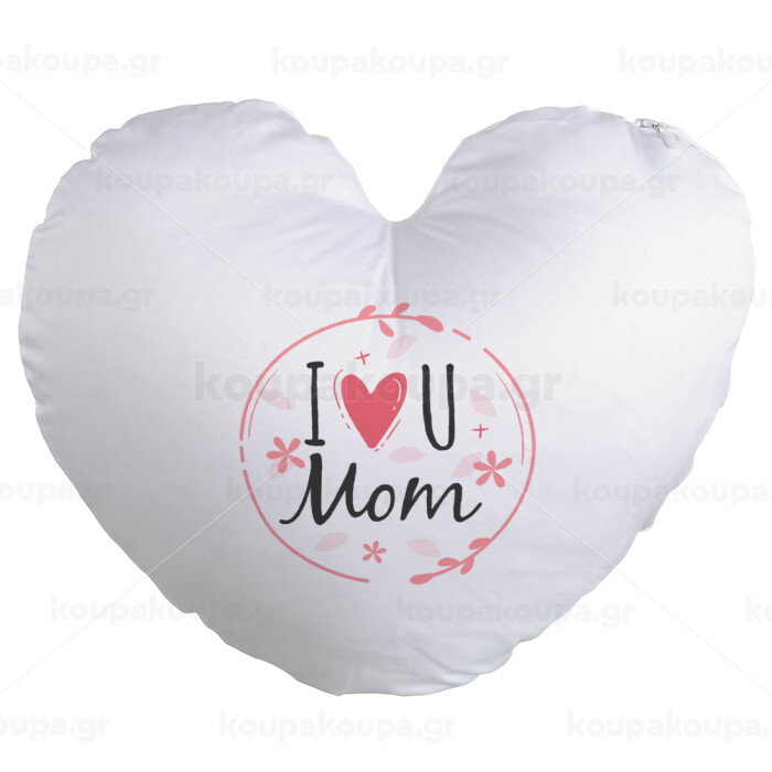 I Love you Mom pink, Μαξιλάρι καναπέ καρδιά 40x40cm περιέχεται το γέμισμα