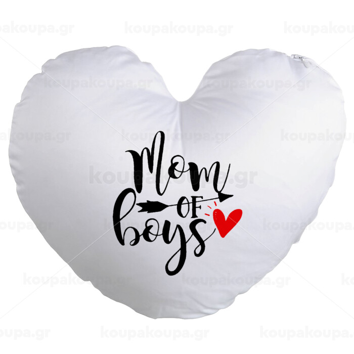 Mom of boys, Μαξιλάρι καναπέ καρδιά 40x40cm περιέχεται το γέμισμα