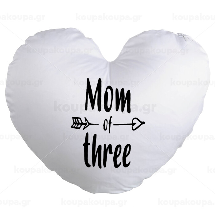 Mom of three, Μαξιλάρι καναπέ καρδιά 40x40cm περιέχεται το γέμισμα