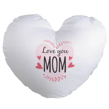 Mother's day I Love you Mom heart, Μαξιλάρι καναπέ καρδιά 40x40cm περιέχεται το γέμισμα