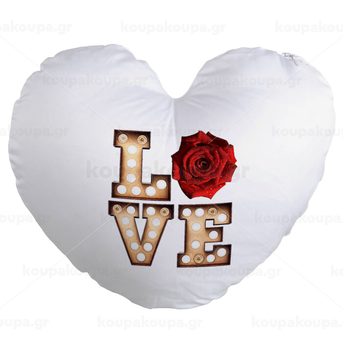 Love lights and roses, Μαξιλάρι καναπέ καρδιά 40x40cm περιέχεται το γέμισμα