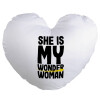 She is my wonder woman, Μαξιλάρι καναπέ καρδιά 40x40cm περιέχεται το γέμισμα