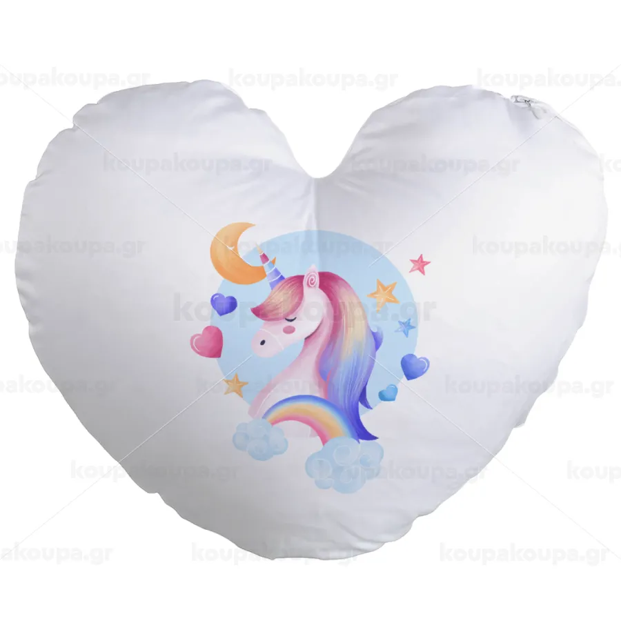 Μονόκερος, Μαξιλάρι καναπέ καρδιά 40x40cm περιέχεται το γέμισμα
