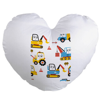 Hand drawing building truck, Μαξιλάρι καναπέ καρδιά 40x40cm περιέχεται το γέμισμα
