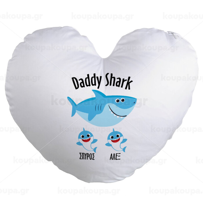 Daddy Shark (με ονόματα παιδικά), Μαξιλάρι καναπέ καρδιά 40x40cm περιέχεται το γέμισμα