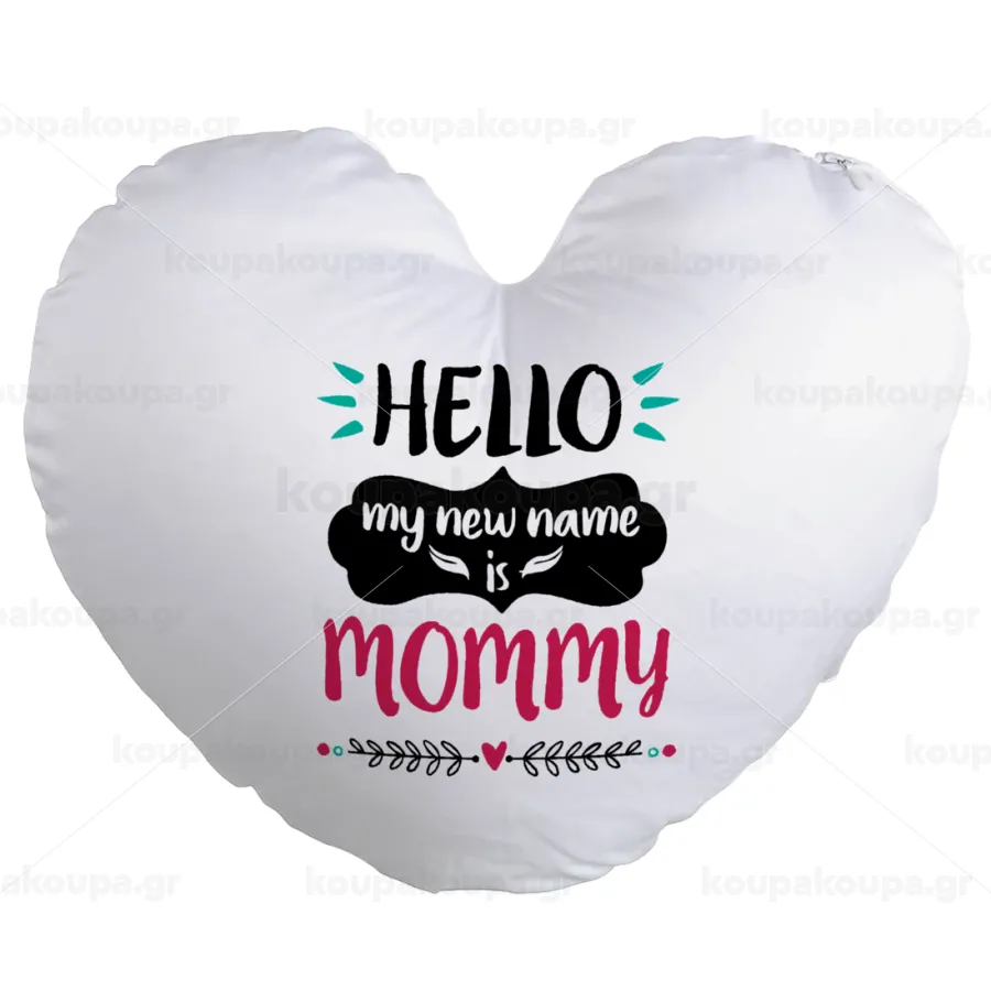 Hello, my new name is Mommy, Μαξιλάρι καναπέ καρδιά 40x40cm περιέχεται το γέμισμα