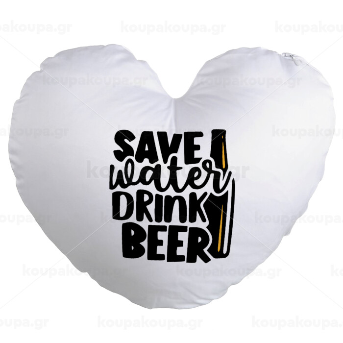 Save Water, Drink BEER, Μαξιλάρι καναπέ καρδιά 40x40cm περιέχεται το γέμισμα