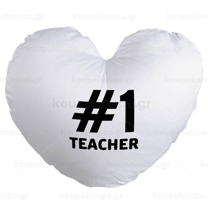 #1 teacher, Μαξιλάρι καναπέ καρδιά 40x40cm περιέχεται το γέμισμα