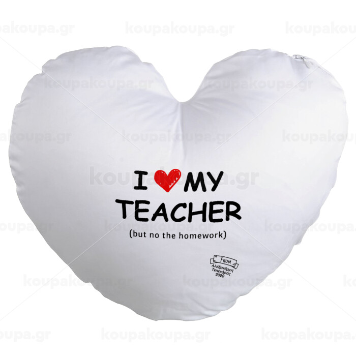 i love my teacher but no the homework, Μαξιλάρι καναπέ καρδιά 40x40cm περιέχεται το γέμισμα