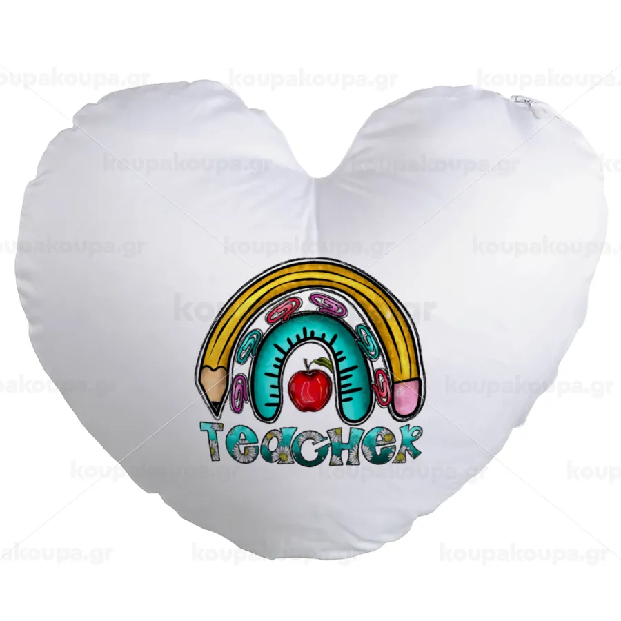 Teacher, Μαξιλάρι καναπέ καρδιά 40x40cm περιέχεται το γέμισμα