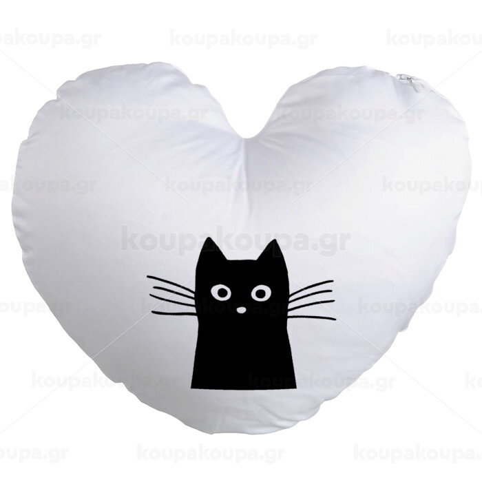 Μαύρη γάτα, Μαξιλάρι καναπέ καρδιά 40x40cm περιέχεται το γέμισμα