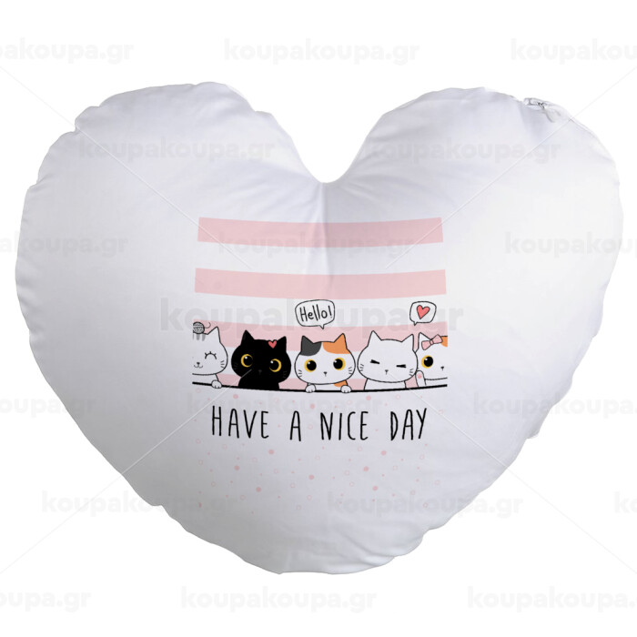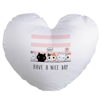 Have a nice day cats, Μαξιλάρι καναπέ καρδιά 40x40cm περιέχεται το γέμισμα