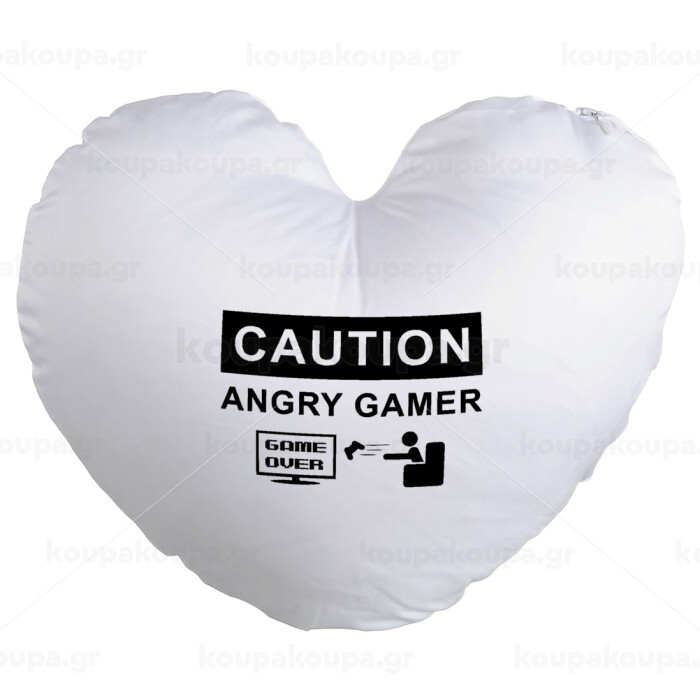 Caution, angry gamer!, Μαξιλάρι καναπέ καρδιά 40x40cm περιέχεται το γέμισμα