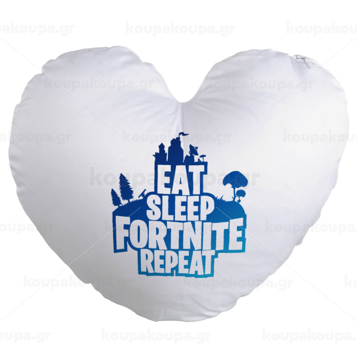 Eat Sleep Fortnite Repeat, Μαξιλάρι καναπέ καρδιά 40x40cm περιέχεται το γέμισμα