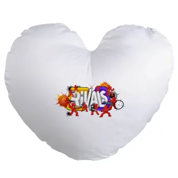 Μαξιλάρι σχήματος καρδιάς κορυφαίας ποιότητας από μαλακό ύφασμα εξαιρετικής ποιότητας με έντονα χρώματα και αφράτο γέμισμα.