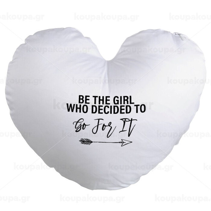 Be the girl who decided to, Μαξιλάρι καναπέ καρδιά 40x40cm περιέχεται το γέμισμα