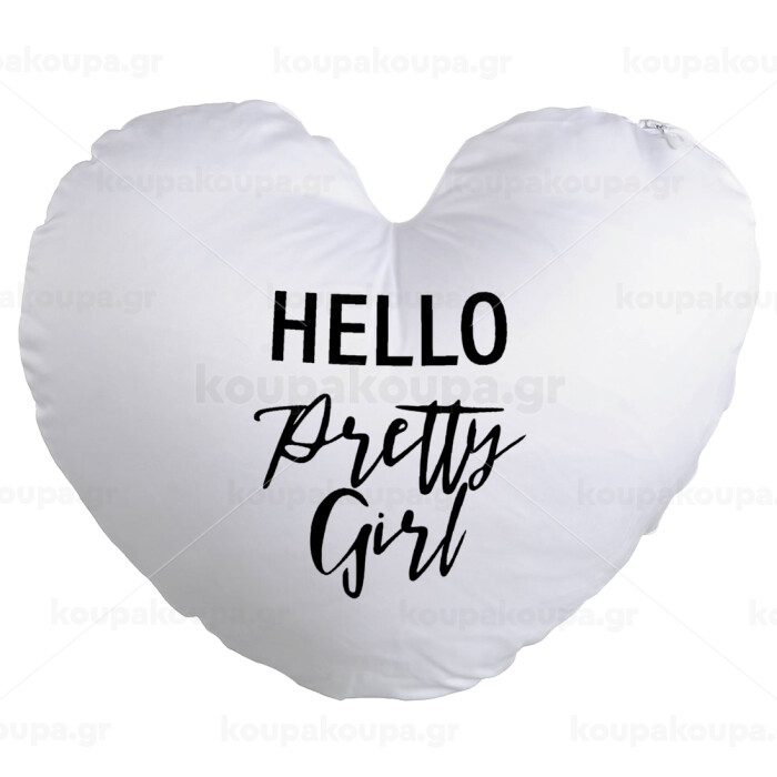 Hello pretty girl, Μαξιλάρι καναπέ καρδιά 40x40cm περιέχεται το γέμισμα