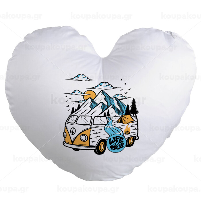 Life is a trip, Μαξιλάρι καναπέ καρδιά 40x40cm περιέχεται το γέμισμα