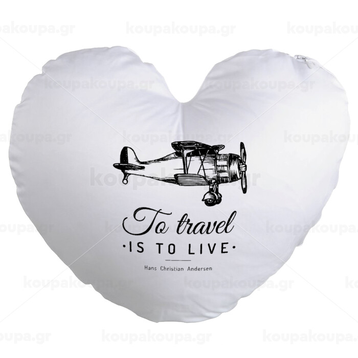 To travel is to live, Μαξιλάρι καναπέ καρδιά 40x40cm περιέχεται το γέμισμα