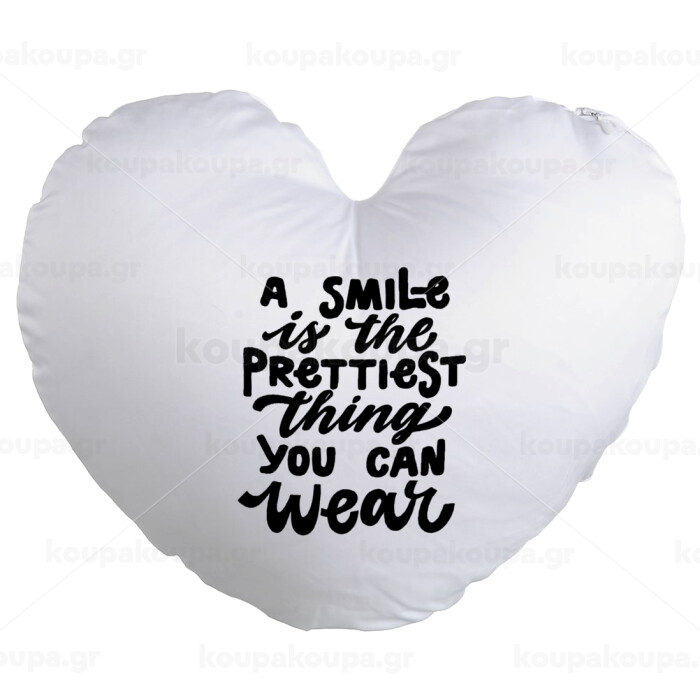 A smile is the prettiest thing you can wear, Μαξιλάρι καναπέ καρδιά 40x40cm περιέχεται το γέμισμα