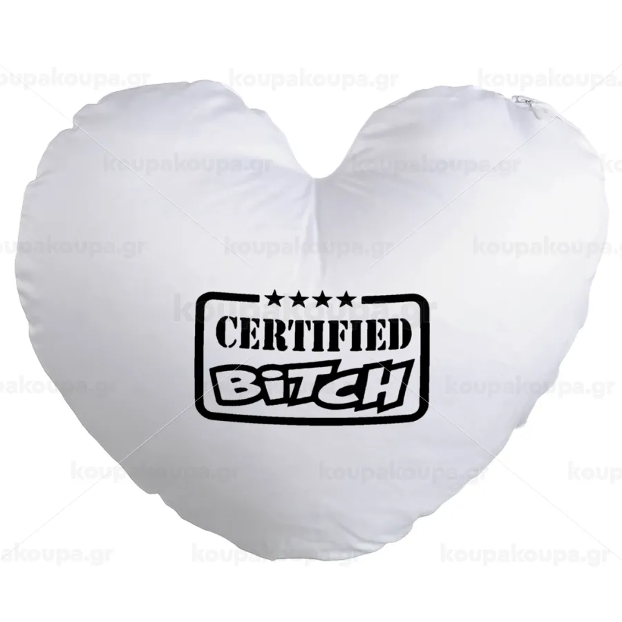 Certified Bitch, Μαξιλάρι καναπέ καρδιά 40x40cm περιέχεται το γέμισμα