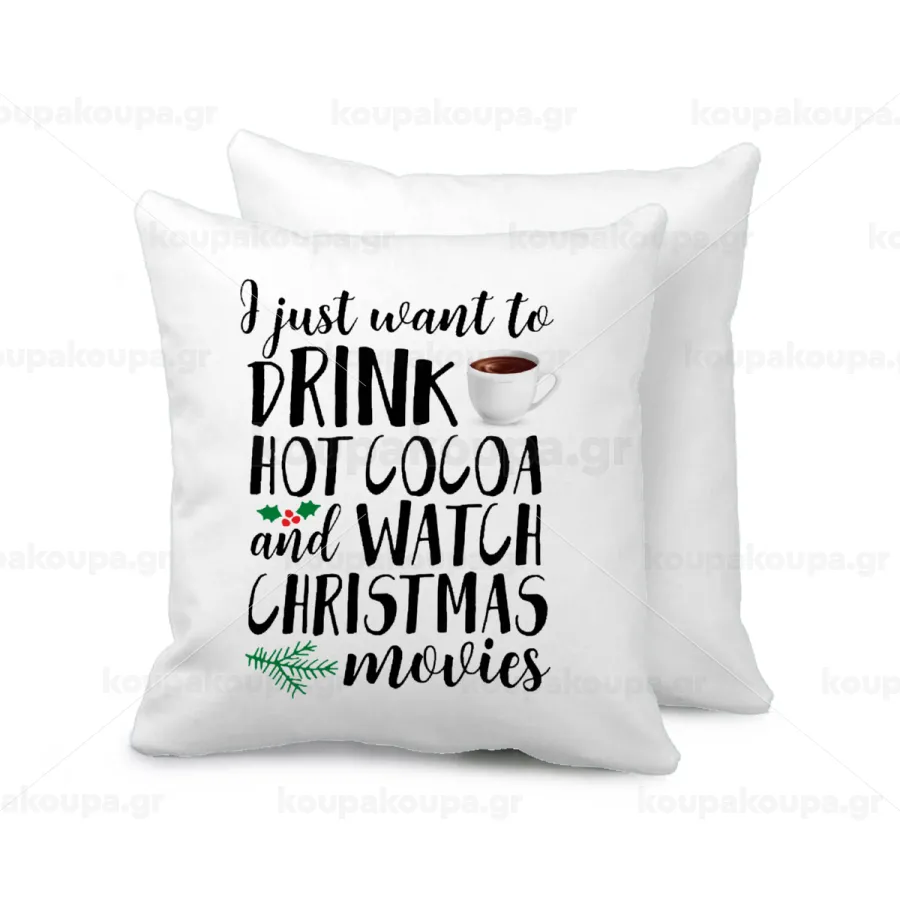 I just want to drink hot cocoa and watch christmas movies, Μαξιλάρι καναπέ 40x40cm περιέχεται το γέμισμα