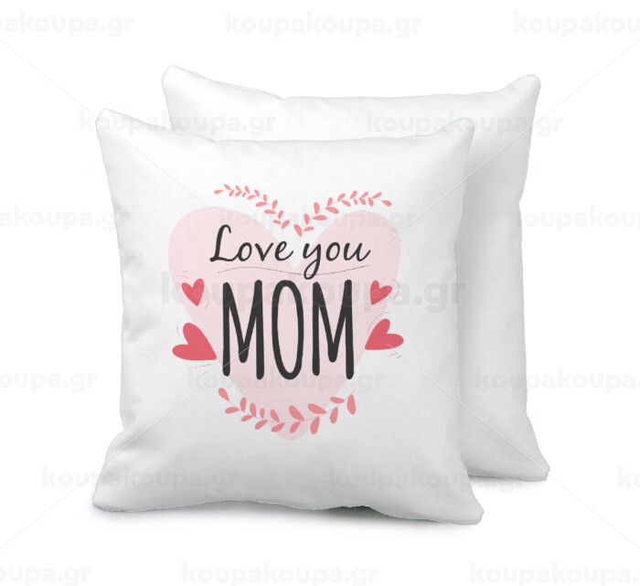 Mother's day I Love you Mom heart, Μαξιλάρι καναπέ 40x40cm περιέχεται το γέμισμα