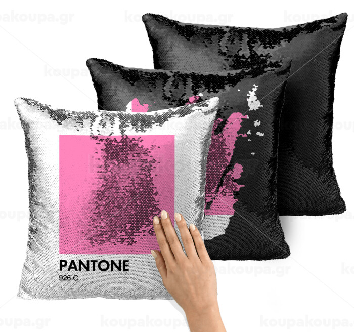 PANTONE Pink C, Μαξιλάρι καναπέ Μαγικό Μαύρο με πούλιες 40x40cm περιέχεται το γέμισμα