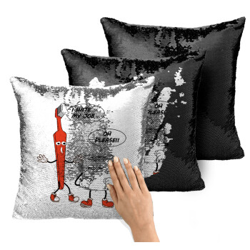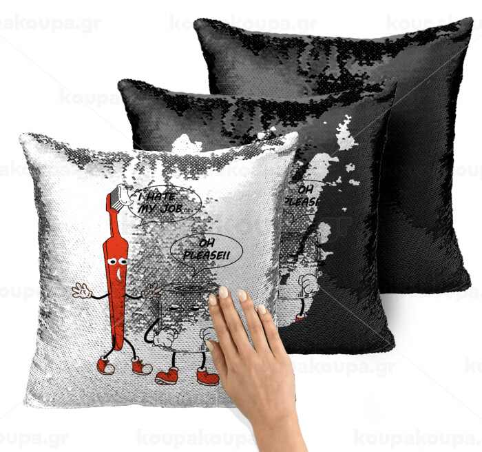 I hate my job, Μαξιλάρι καναπέ Μαγικό Μαύρο με πούλιες 40x40cm περιέχεται το γέμισμα