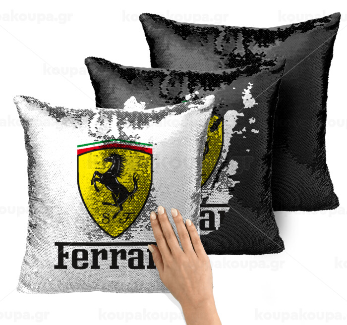 Ferrari S.p.A., Μαξιλάρι καναπέ Μαγικό Μαύρο με πούλιες 40x40cm περιέχεται το γέμισμα