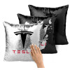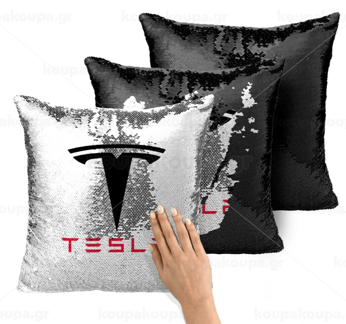 Tesla motors, Μαξιλάρι καναπέ Μαγικό Μαύρο με πούλιες 40x40cm περιέχεται το γέμισμα