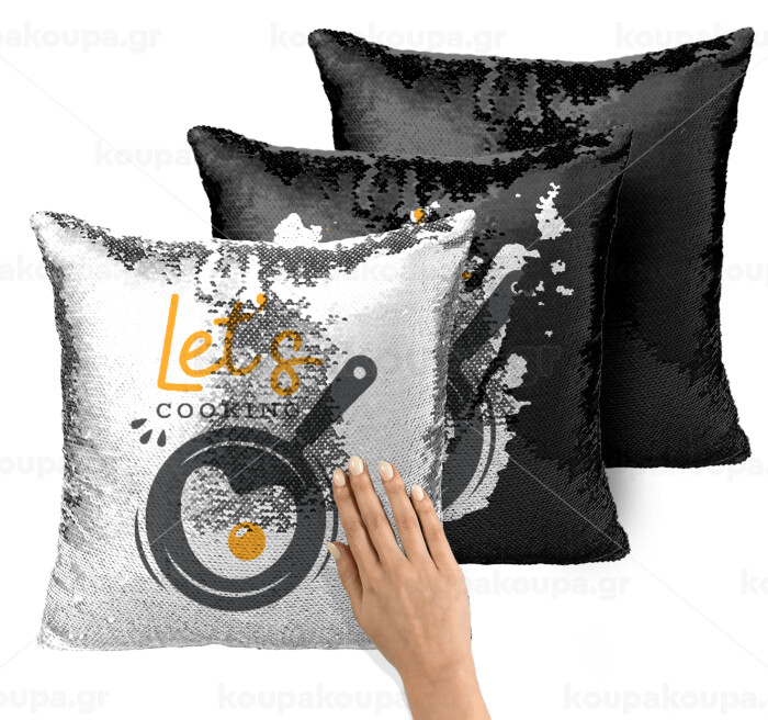 Let's cooking, Μαξιλάρι καναπέ Μαγικό Μαύρο με πούλιες 40x40cm περιέχεται το γέμισμα