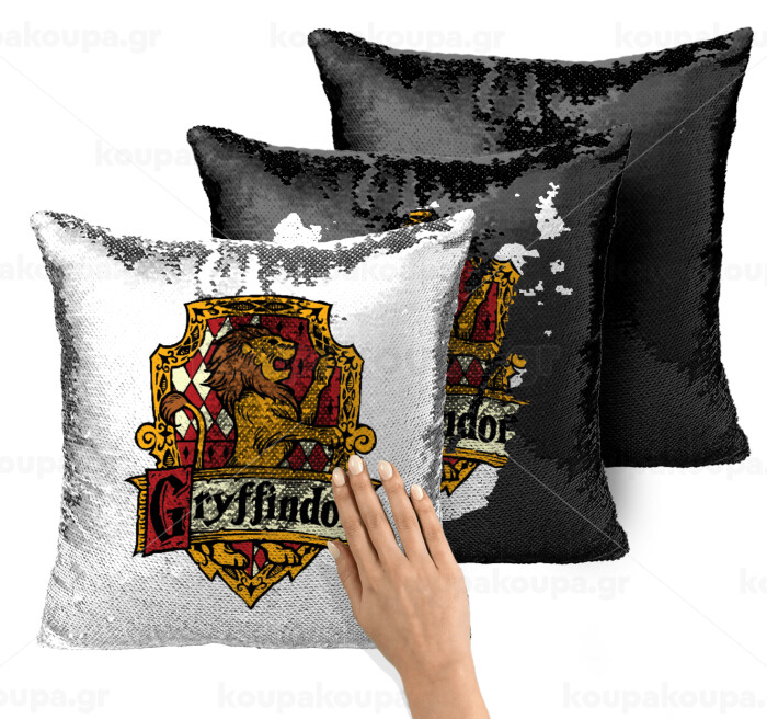 Gryffindor, Harry potter, Μαξιλάρι καναπέ Μαγικό Μαύρο με πούλιες 40x40cm περιέχεται το γέμισμα
