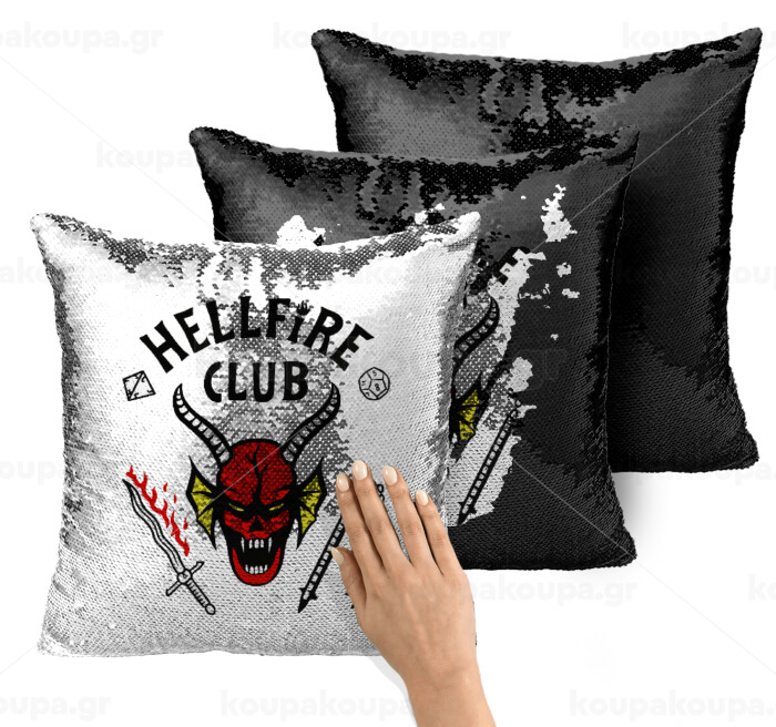 Hellfire CLub, Stranger Things, Μαξιλάρι καναπέ Μαγικό Μαύρο με πούλιες 40x40cm περιέχεται το γέμισμα
