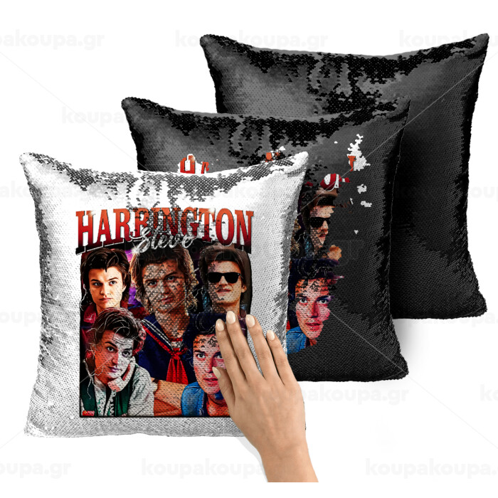 Steve Harrington, Stranger Things, Μαξιλάρι καναπέ Μαγικό Μαύρο με πούλιες 40x40cm περιέχεται το γέμισμα
